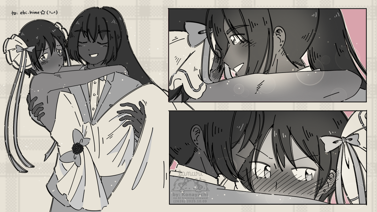 I don't think I've drawn MxM before...? Wait, I have... 🤯 it was with Julien and Ted. Wow, interesting that it is from 2 years ago... 🤔 and my art style is quite close. I guess, since I start working on Blooming Chimes in 2023, my art style settled and I've been with it since then. Now, as I made a few VNs and some people start recognising my art style, it's hard to hop to a new art style haha.