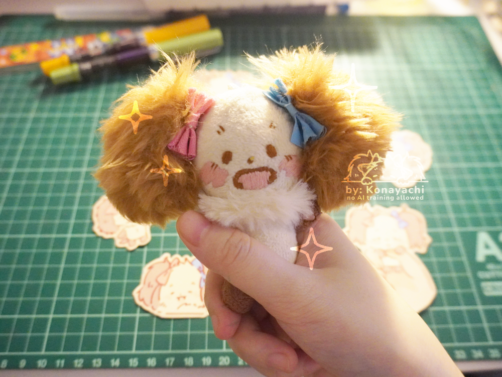 But I am no doll maker. So... I contacted a plushy maker I randomly found on Twitter, we discussed about it and Kitty was made! β¨π