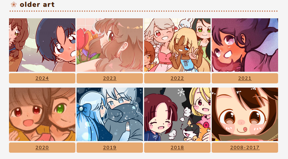 I wrote a little bit of summary of what happened on each year. Wow, as I wrote them, it felt like I went down to memory lane... Looking at old drawing is very heartwarming. I got to recall some past events I completely forgot, such as the time I designed Illa Café maids, and when my current art style started forming. I can see all of it in this gallery page. It's like a proof, timeline, history – whatever you would call it – of what I've been going through artistically.