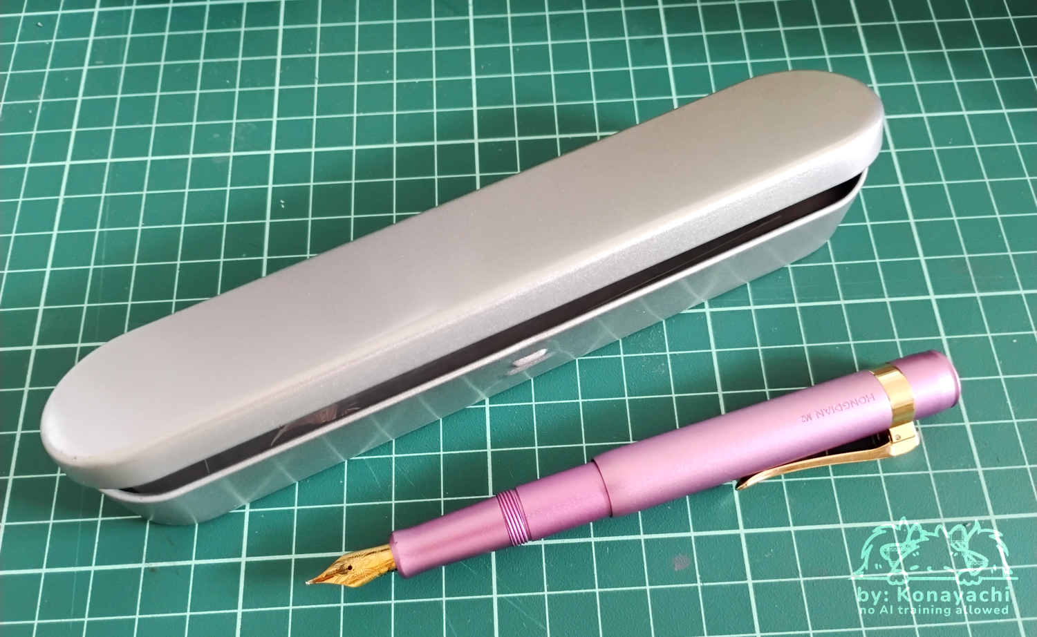 The tin box is plain, similar to Kaweco but Kaweco's is embossed with their logo at least. This one is fully plain. It does work as a pen case, and at least it does its job.