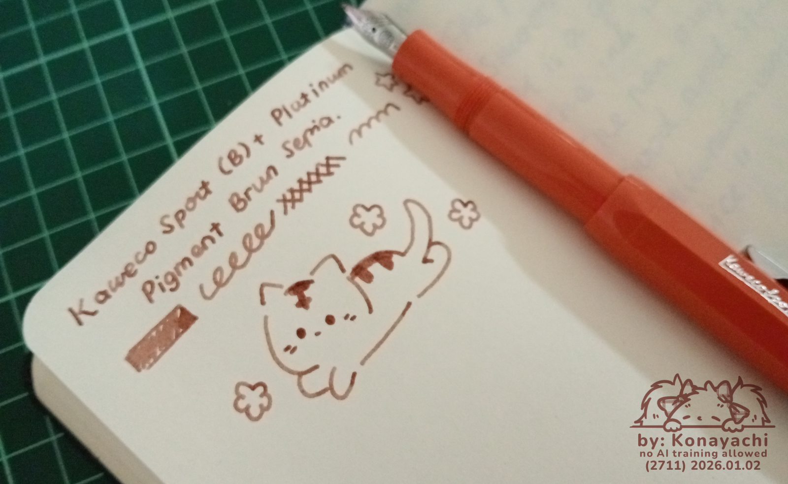 Remember when I bought Platinum Pigment Blue and Rose Red and mentioned how buttery smooth it felt like writing with it? This Platinum Pigment Brun Sepia has the same buttery smooth ink too! I used it in Kaweco Sport Broad nib, so perhaps it's a very broad/wet nib to write with. But I'm convinced, that all of Platinum Pigment inks are really smooth and wet... I love them a lot!!!