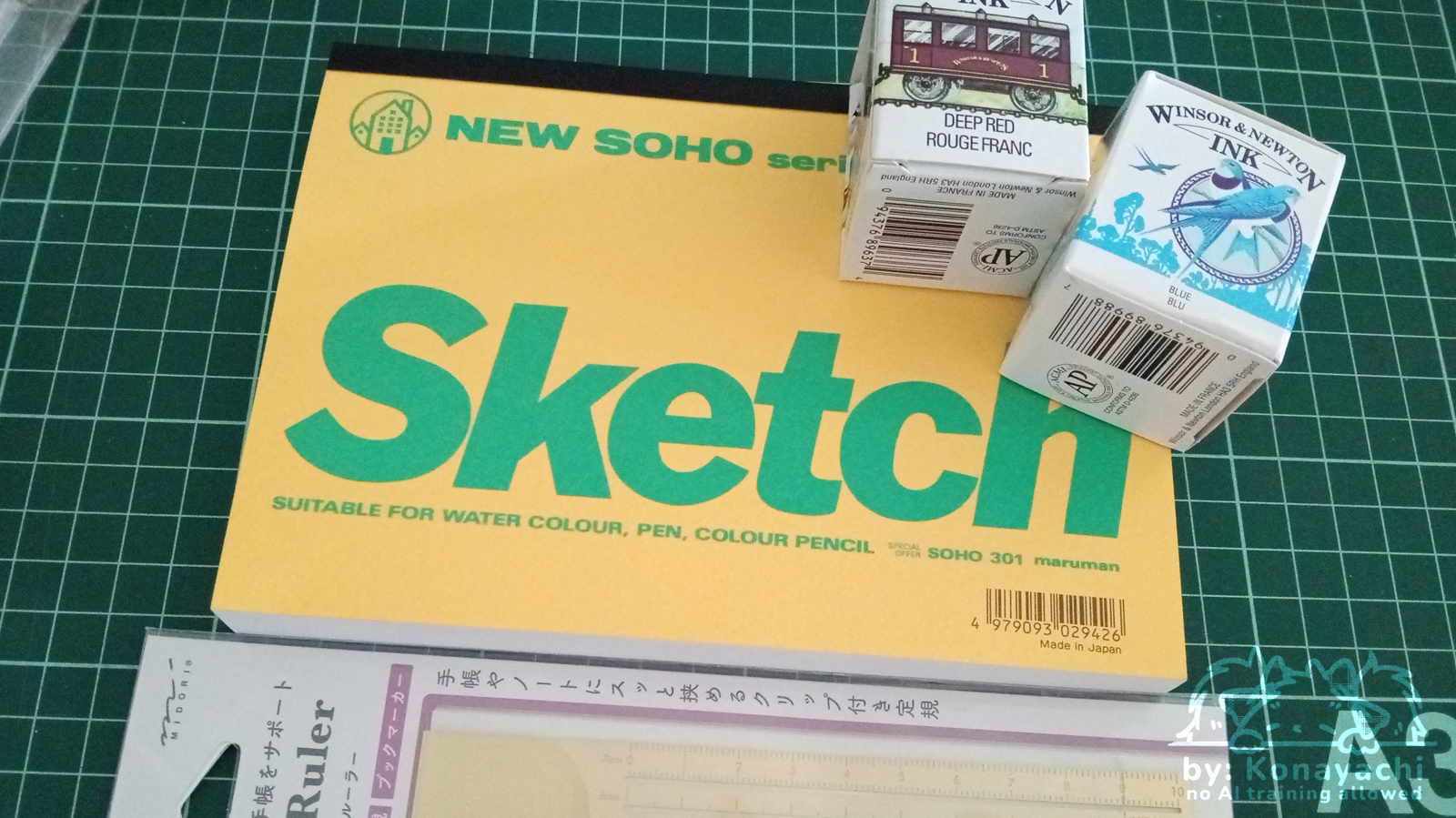 Small sketchpad, two more drawing inks (deep red and blue), and a small ruler for my pocket sketchbook. The ruler has cute cats stencil, I threw 12€ for it haha ;_;