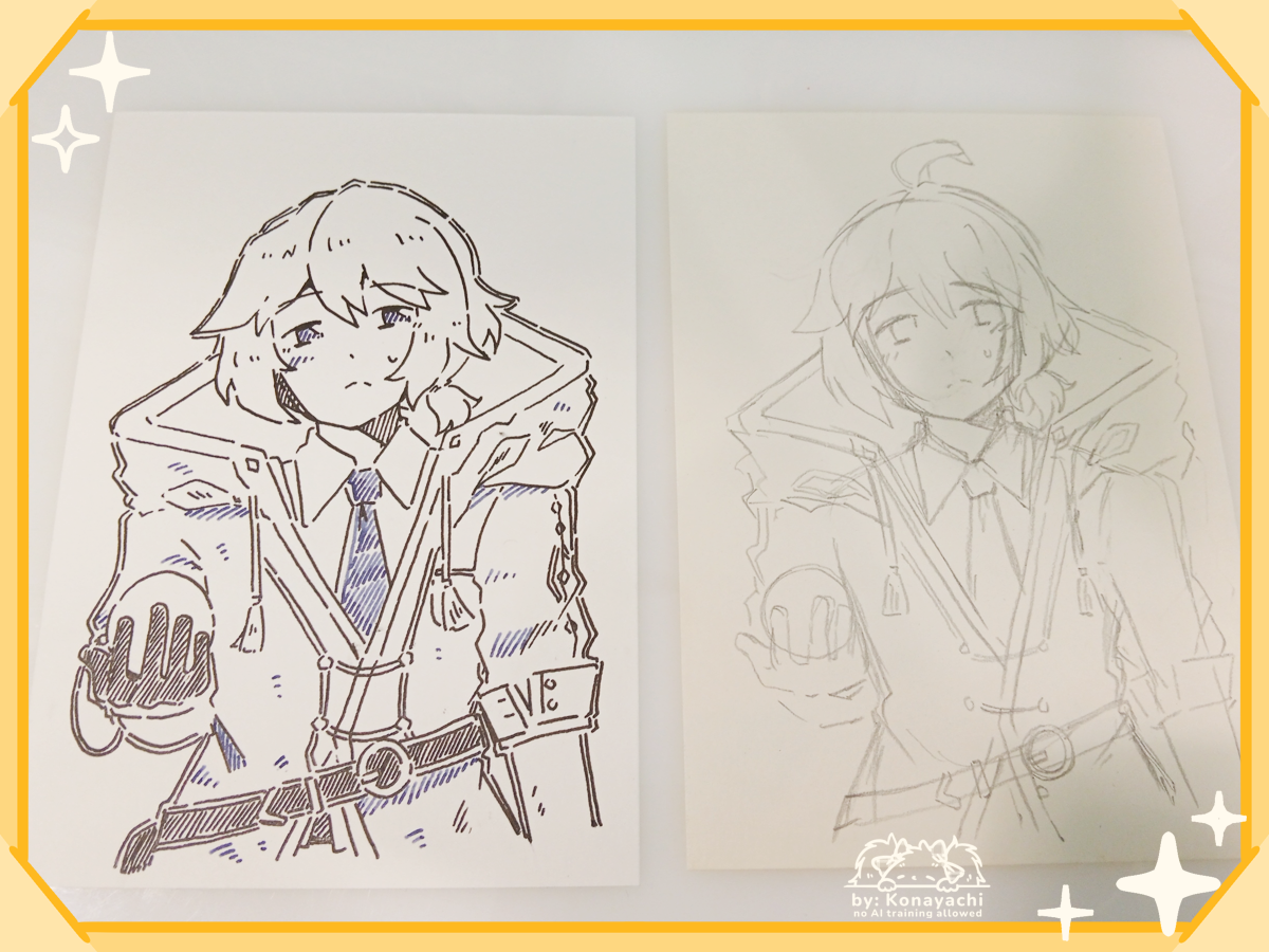 Also another OC – I think he looks really charming! I kind of realised a few parts that I really, really want to fix digitally but being an inked art, I guess some small details flaw (smudges and such) is its own charm. It was really fun making this!