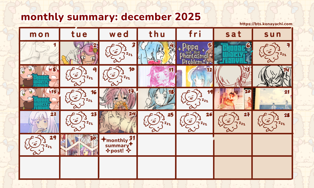 As for December overall, it has always been a slower month for me. It gets a bit too cold for my liking, but I prefer warmer days to colder ones. Strangely, colder days give me more creative fuels, so it's a nice thing by its own!