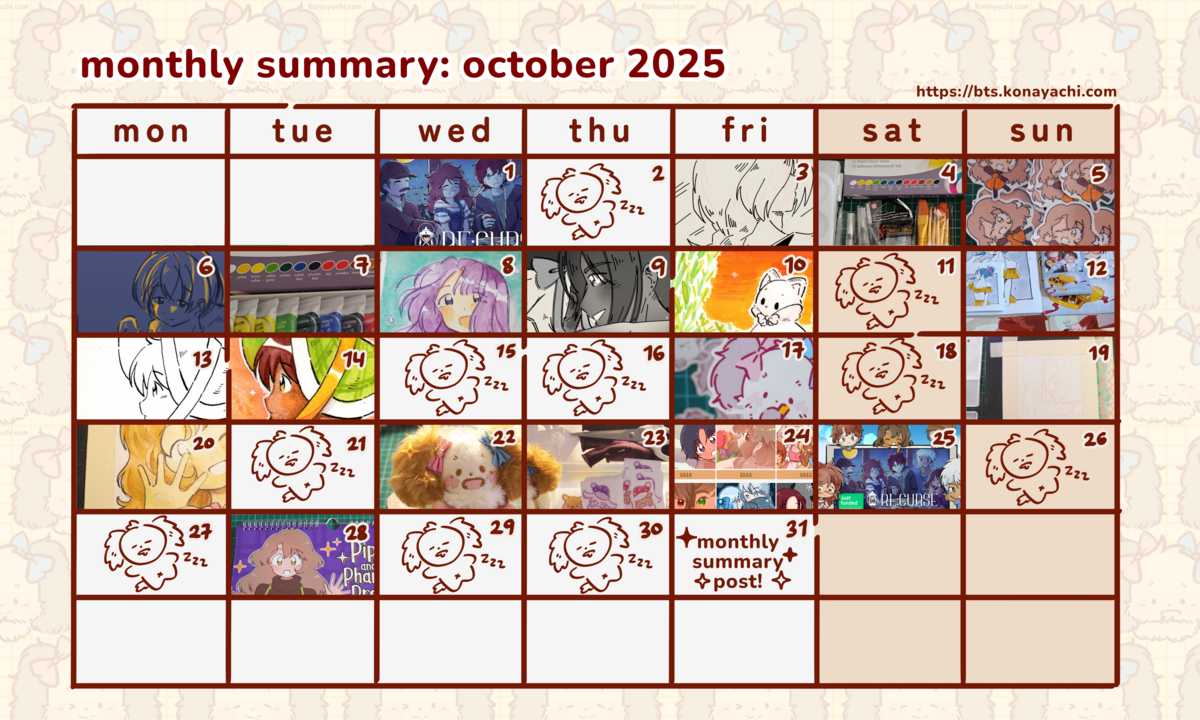 November is going to be another really busy month. Art market, merch making, mailing stuff, Re:Curse, commissions work, art trades, VN updates, Steam pages, scripting next project, and more... I'm tired but I'll keep doing my best! 💪 It's fun!